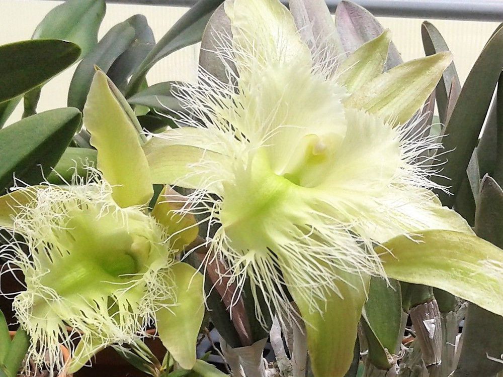 Rhyncholaelia digbyana is an orchid of the genus Rhyncholaelia. Plant blooms in the summer with up to two 17 cm wide flowers. The flowers are light lemon color with a refreshing lemon-like smell and start to appear from summer. This Rhyncholaelia digbyana orchid is found growing on trees and bushes in Costa Rica, Belize, Guatemala, Honduras and Southeast Mexico. The blooming season is from September till January, making it an ideal time to observe.